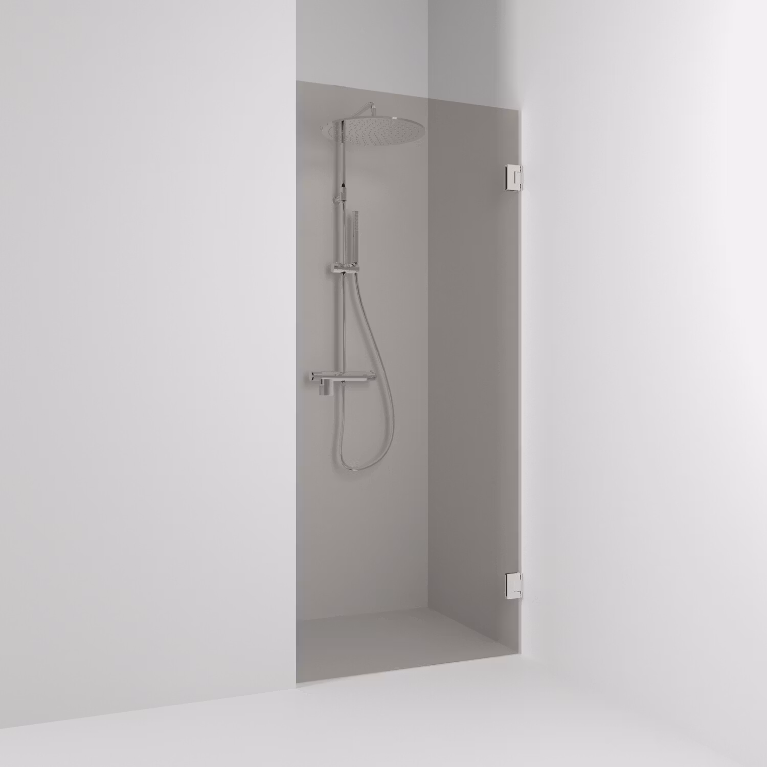 180° nischdusch enkel 78.5 med en öppningsbar dörr i bronsglas och profiler i krom. Nischdusch med 8 mm härdat säkerhetsglas och självstängande gångjärn. B: 78,