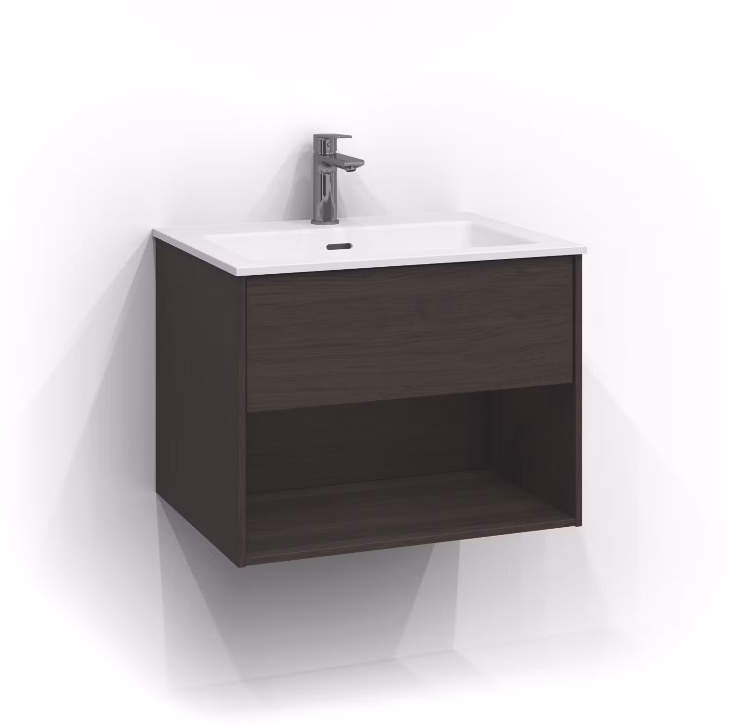 Epos underdel 60x45 i brun ask med Plan front. Tvättställsskåpet har 1 låda med mjukstängande lådskena som gör att hela lådans längd kan användas. B: 60 H: 45 D