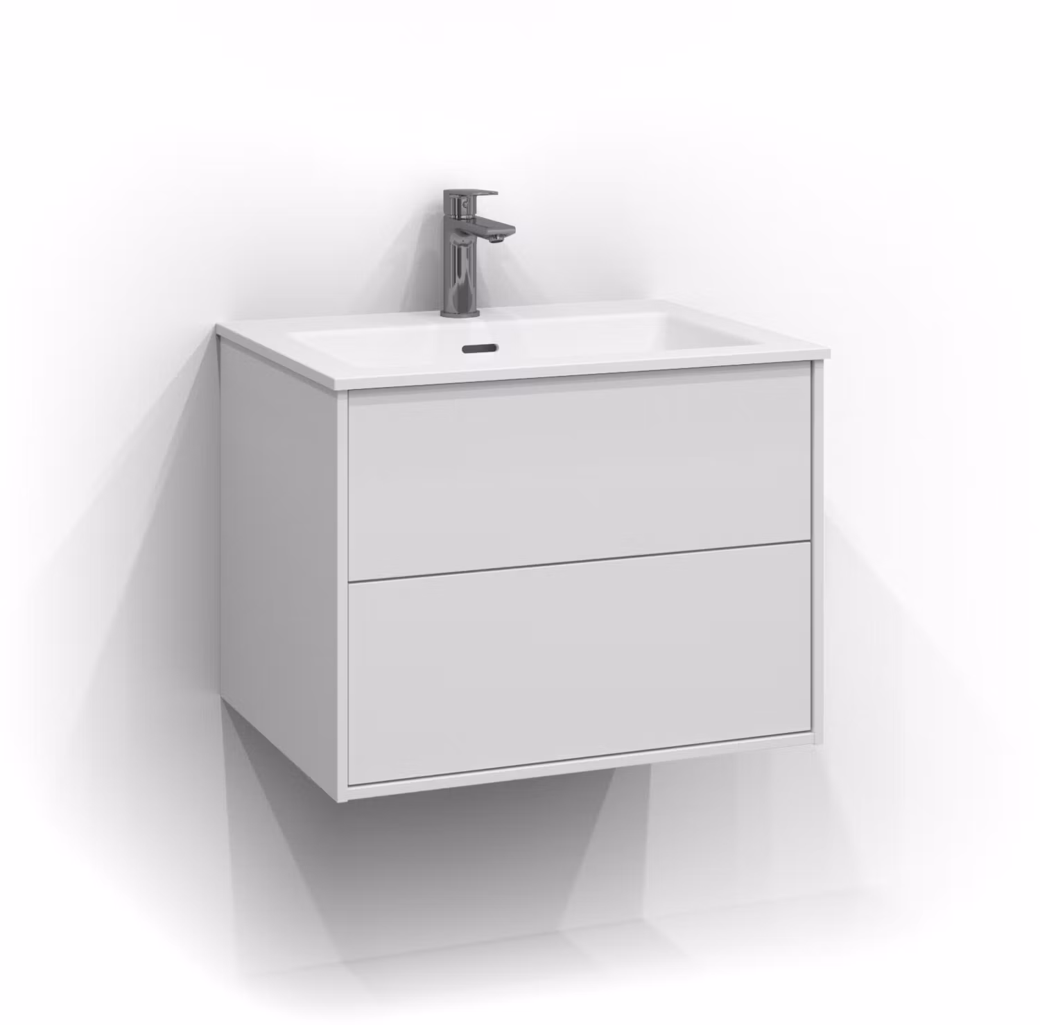 Epos underdel 60x45 i vit med Plan front och push open. Tvättställsskåpet har 2 lådor med mjukstängande lådskena som gör att hela lådans längd kan användas. B: