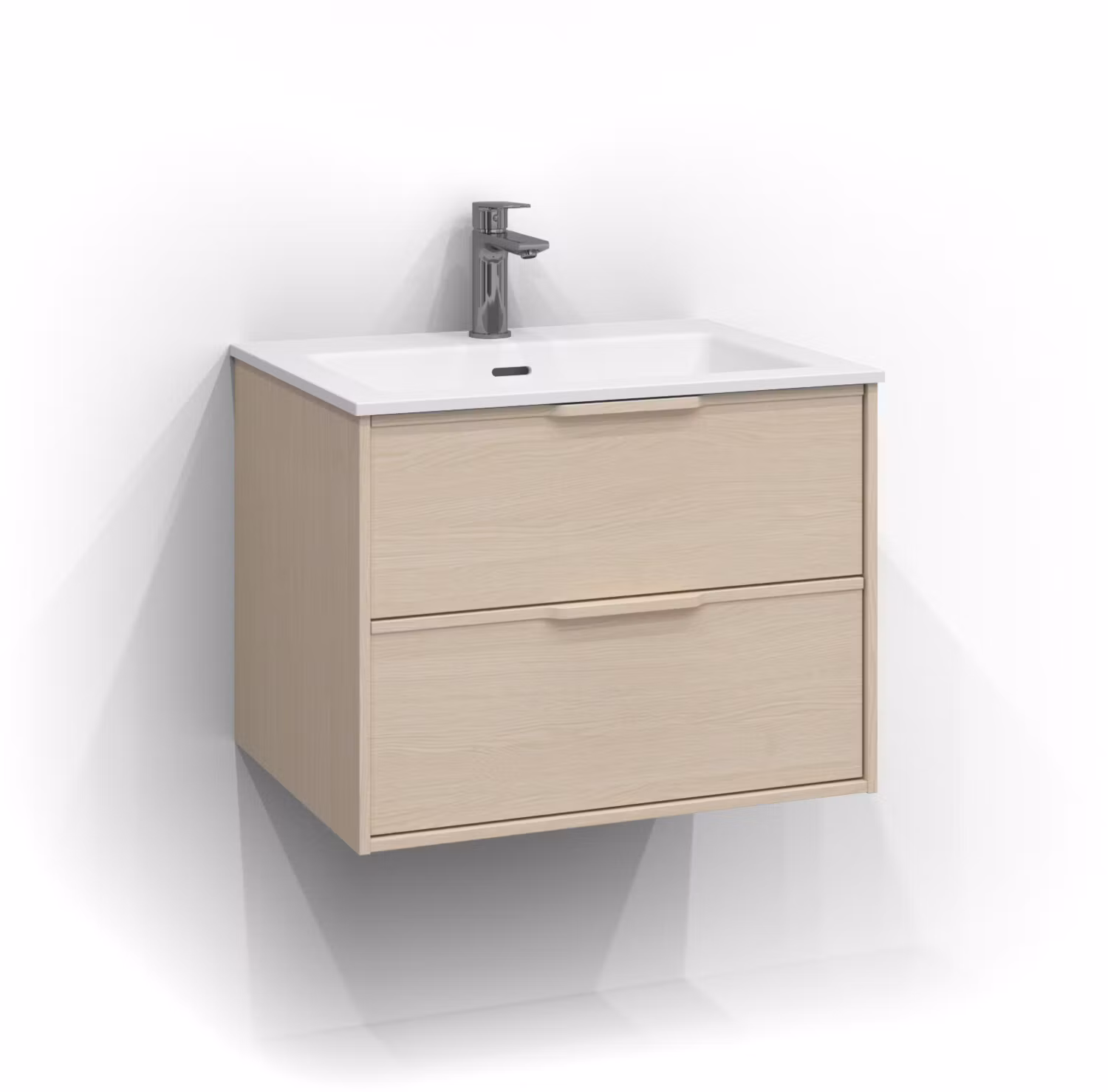 Epos underdel 60x45 i vit ask med Relief front och integrerat handtag. Tvättställsskåpet har 2 lådor med mjukstängande lådskena som gör att hela lådans längd ka