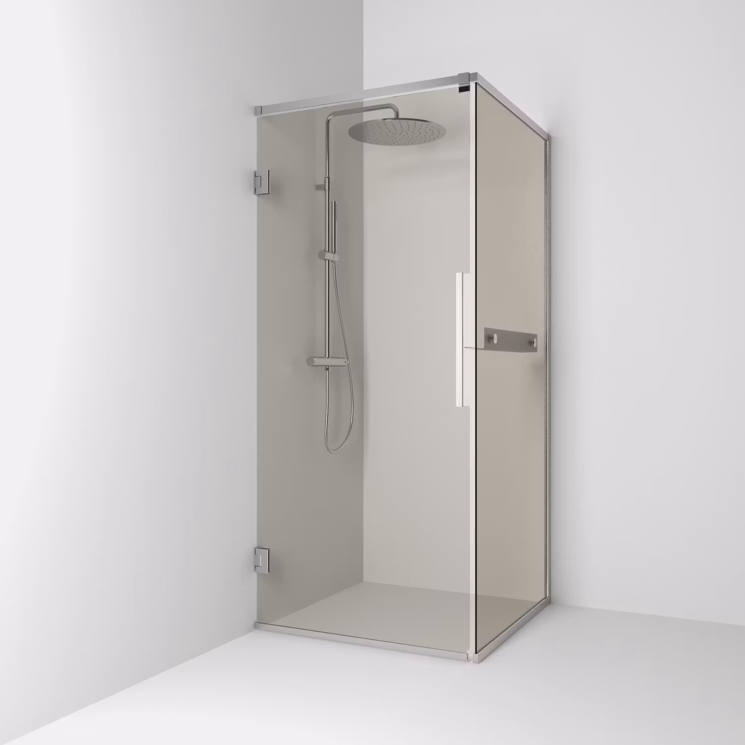 Svedbergs langfoss hörndusch rak/fast 80x82x200 alu matt/bronsglas hylla