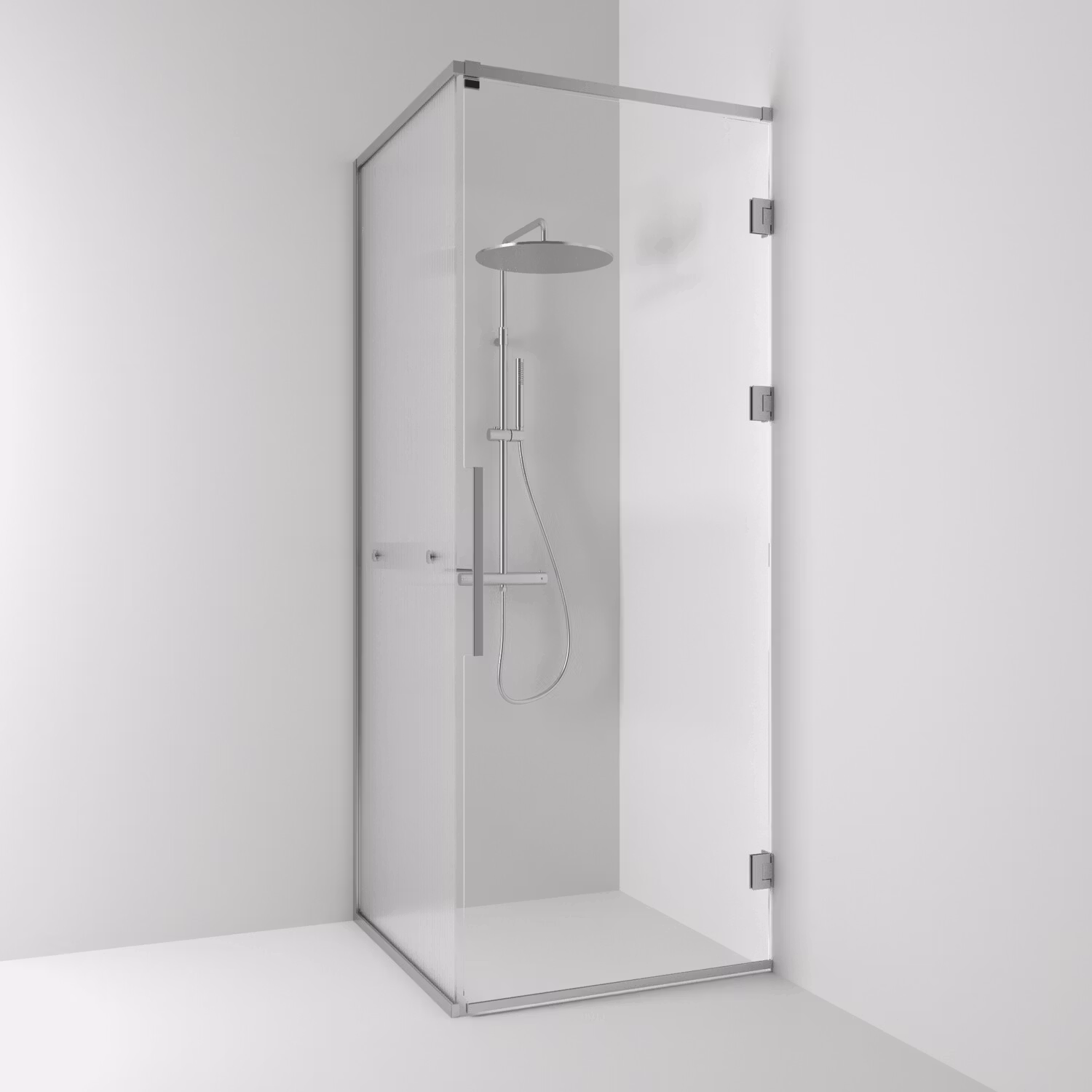 Svedbergs langfoss hörndusch rak/fast 80x92x230 alu matt/linjeglas vänster hylla