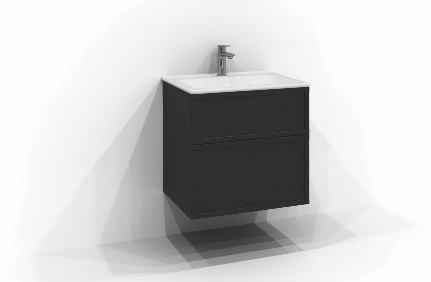 Poem underdel 60x45 i svart ask med Ram front och push open. Tvättställsskåpet har två lådor med mjukstängande lådskenor och fullutdrag som gör att du kan dra u
