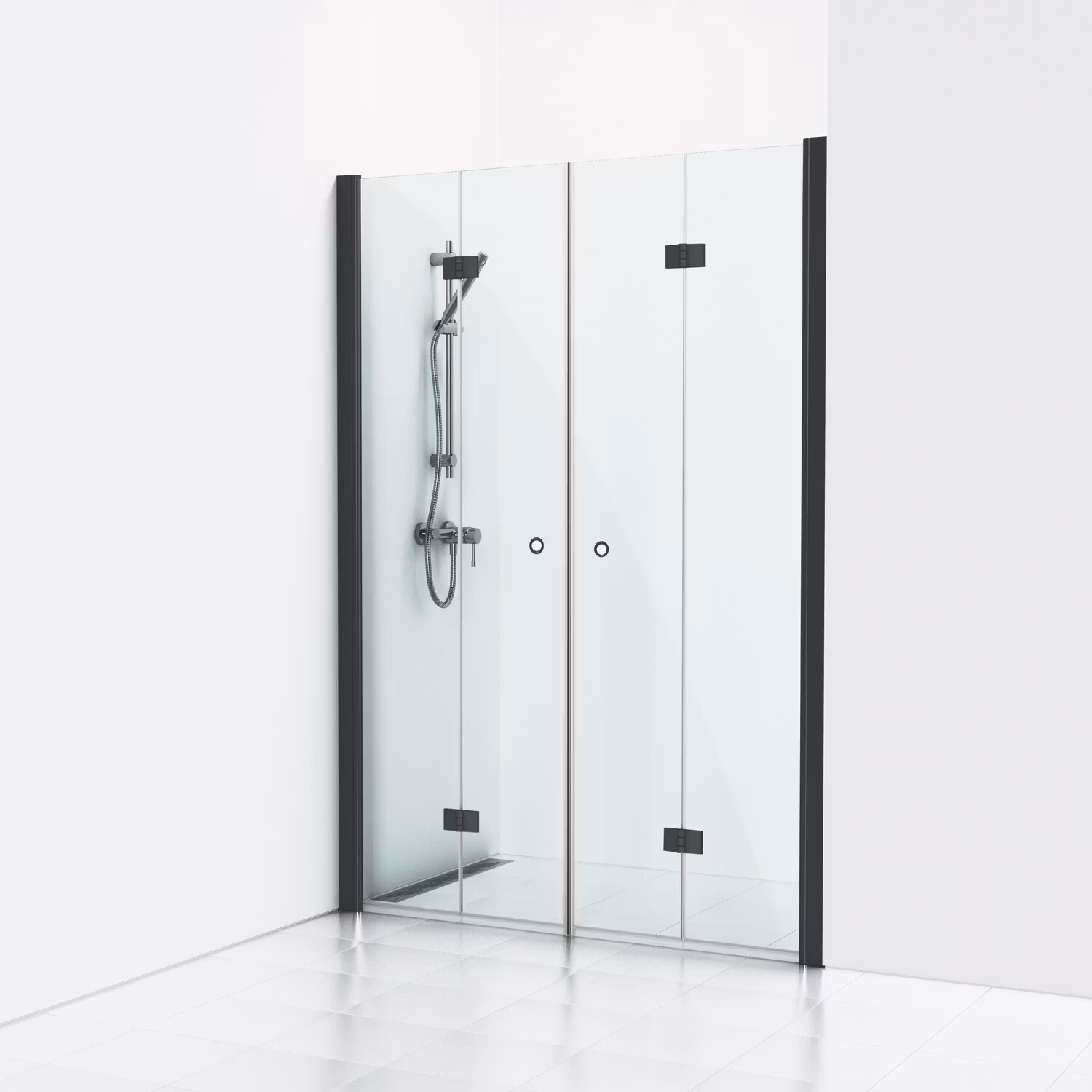 Skoga viknisch dubbel 178 i klarglas och pulverlackerade profiler i svart matt. Härdat säkerhetsglas 6 mm med hålgrepp. B: 178 H: 198 D: 3