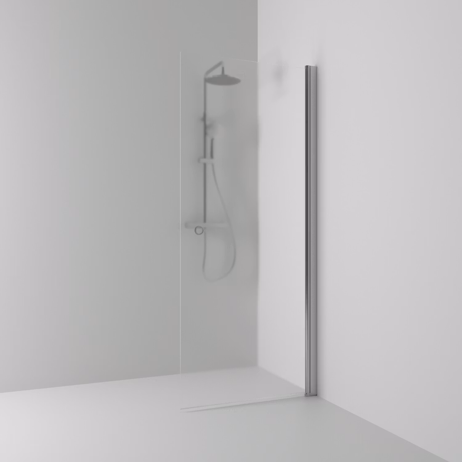 Skoga skärmvägg 67 med rakt utförande i frostglas och anodiserade profiler i matt aluminium. Härdat säkerhetsglas 6 mm med hålgrepp. B: 67 H: 198 D: 3