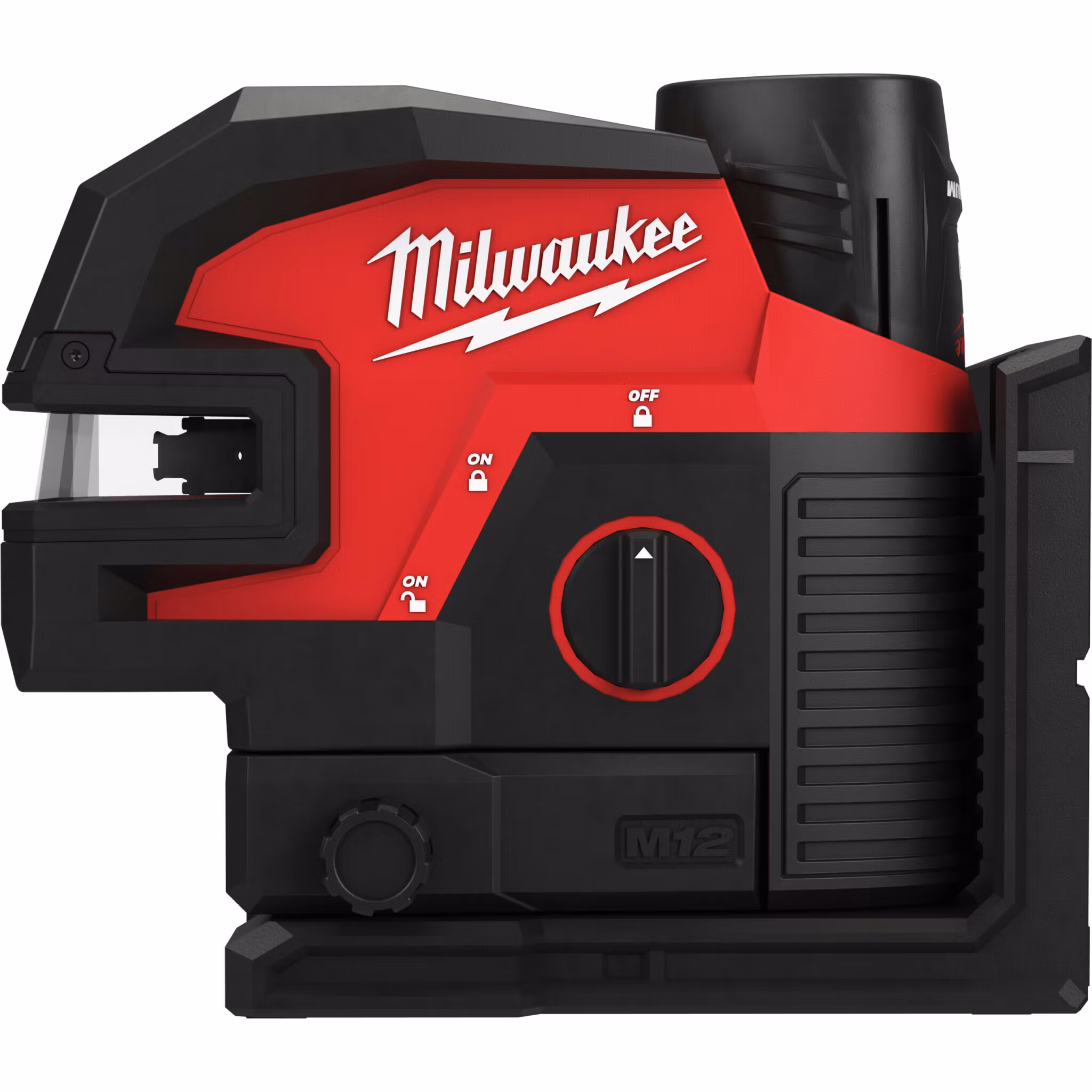 M12? krysslaser med 4 lodpunker som skapar en vågrät och lodrät linje samt lodpunker för överföring i lod. Grön högintensiv laserlinje ger ett arbetsintervall på 38 m och upp til 100 m med mottagare. Drifttid för en hel arbetsdag med 9+ timmar på ett M12? 3.0Ah-batteri. Manuellt läge för användning med vinkling, Självnivelerande läge i upp 4° avvikelse med varning när lasern är utanför toleranserna. Integrerat magnetfäste, ¼? och ?? stativgänga samt spikhål - möjliggör upphängning på plåtreglar, träreglar samt stativ. Magnetfästet ger 360° rotation med "pivot on plumb point" med finjustering. IP54-klassad och klarar fall på 1 meter. Levereras med 1 x 3.0 Ah REDLITHIUM?-batteri, 60 min. laddare, hi-vis målplatta och takfäste i en väska.